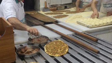 Let’s come to Hizmet Kardesler’ lahmacun. There are many who say that it is the best lahmacun in Istanbul. But let’s say it’s in the top 5 again. There are two types of lahmacun served, Gaziantep style with garlic and Urfa style. Both are delicious.