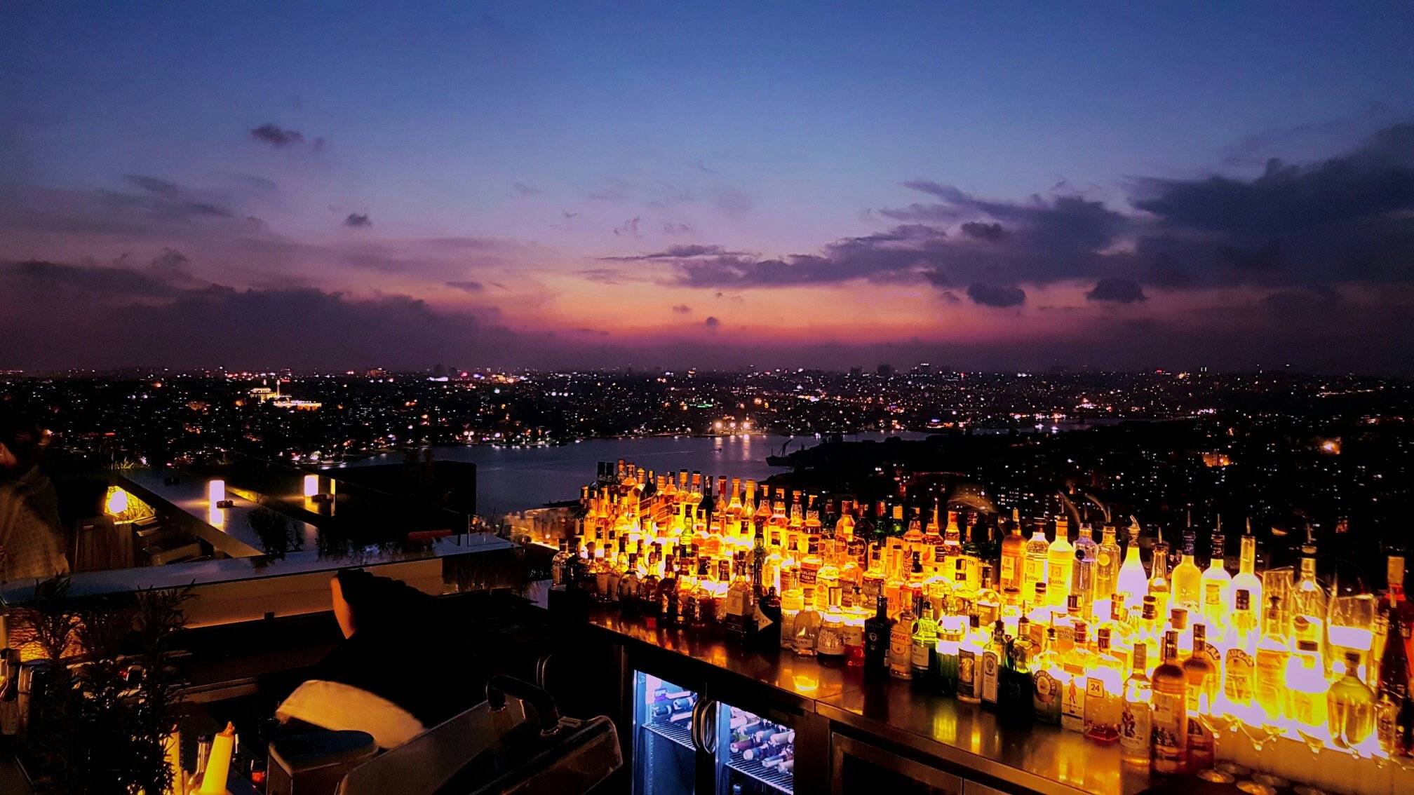 Located at the top of the Marmara Pera, the roof terrace bar is slightly surreal, in the midst of jasmine scents accompanied by the chilling breeze of Galata, you feel like anything is possible in this city. “With white soft furnishings under chic minimalism, an outdoor pool, a cool DJ spinning mellow tunes, breathtaking views shimmering in the setting sun where old mosques glow like gold crowns, the bar promises to leave any new guest in awe.” Generously prepared martinis are highly demanded.